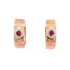 These elegant 925 rose gold hoops feature a central circle adorned with vibrant fuchsia cubic zirconia, adding a refined splash of color to any ensemble. Their sophisticated design makes them perfect for both everyday wear and special occasions.